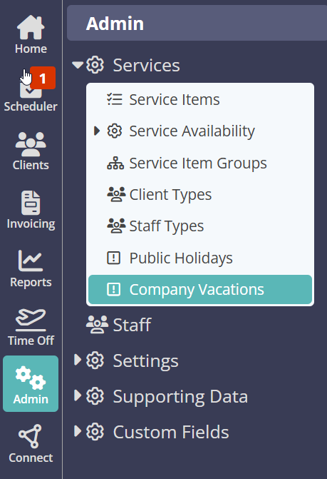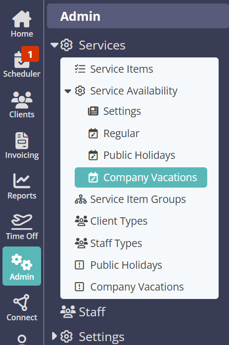 Navigation: Admin > Services > Company Vacations