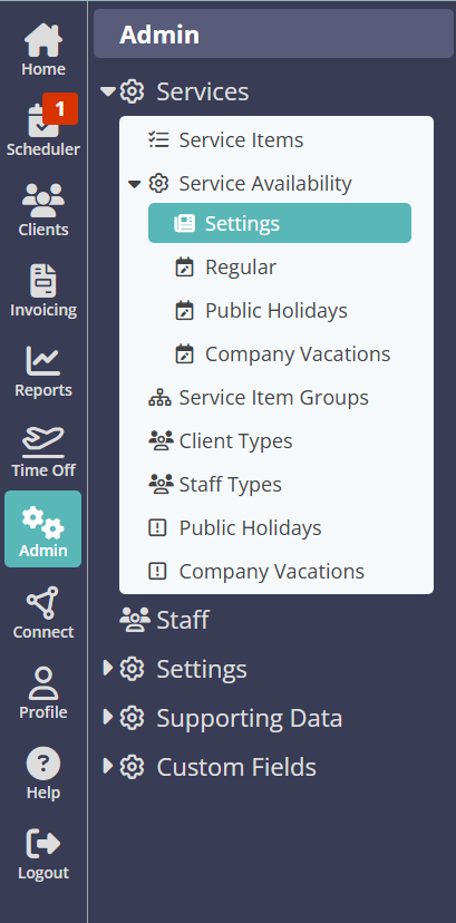 Navigation: Admin > Services > Service Availability > Settings
